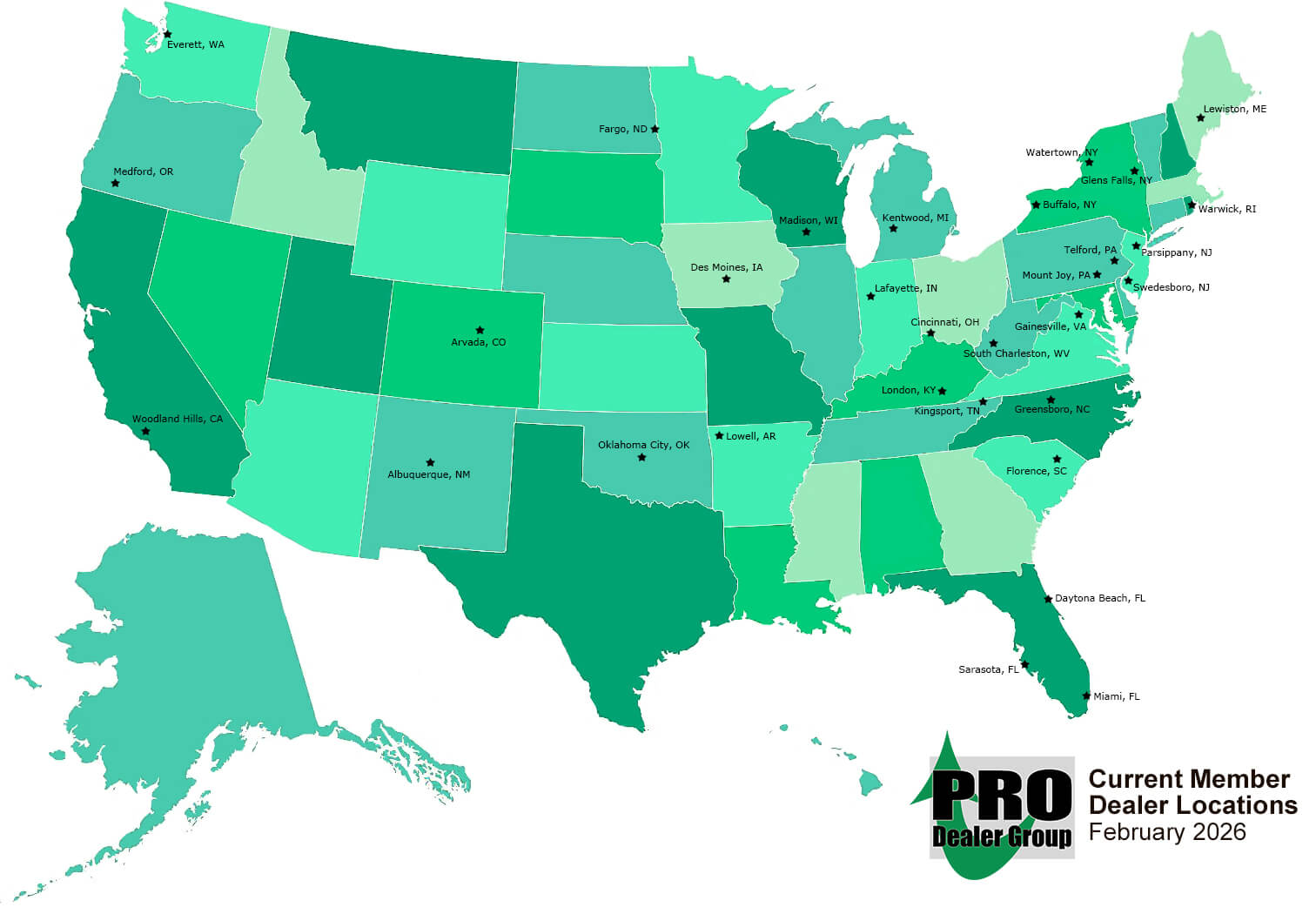 PRO Dealer Group Territory Coverage Map (click for a large map):